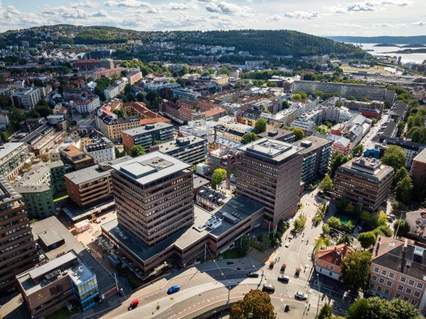 Hagegata 22 og 23 er et kontorbygg som er et landemerke på Tøyen. Teglsteinfasaden gir bygget en egenart som ellers passer veldig godt inn i Tøyen sin unike identitet. Eiendommen gikk gjennom en totalrehabilitering i 2021 som løftet hele totalopplevelsen av bygget – både innvendig og utvendig. Nå kan en heldig leietaker sikre seg flotte lokaler med 360 grader utsikt utover byen.